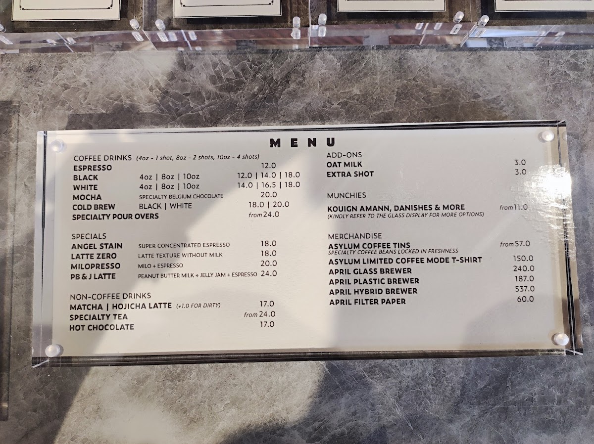 Asylum Coffeehouse Bangsar offers a thoughtfully curated menu that balances rich coffee craftsmanship with satisfying savory dishes. Their signature Earl Brown is a standout—an inventive blend of orange juice infused with espresso and crowned with a silky earl grey cold foam, delivering a unique, refreshing experience for MYR 19.90. Coffee aficionados will appreciate classic options like the White Classic with smooth milk (MYR 15.60), indulgent Mocha EspressoLong Black Americano